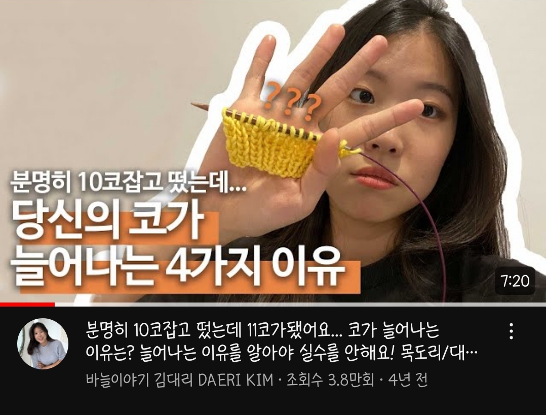 "코가 늘어나는 이유" 라든지 "편물에 구멍이 났을 때 수정하는 법" 이런 건 많은데