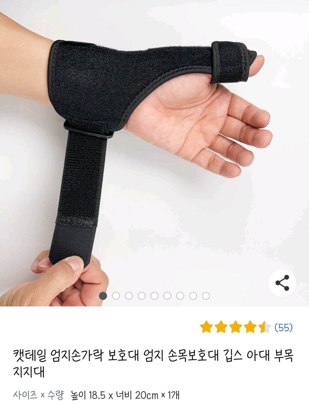 잘 때 요걸 착용해서 엄지를 편 상태로 고정시키고 자봤더니 확실히 아침 통증이 많이 좋아졌다